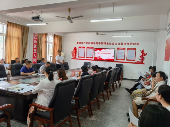 王奎要求:当前,中国特色社会主义进入新时代,我们如期实现了第一个百年奋斗目标,正朝着第二个百年奋斗目标阔步前行。我们要把握新发展阶段,贯彻新发展理念,构建新发展格局,推动高质量发展。“中国特色社会主义”是党百年奋斗的根本成就。老师们平时都要抽时间学习党的历史,特别是今天习近平总书记“七一”重要讲话精神,每个党员更要深入学习领会。