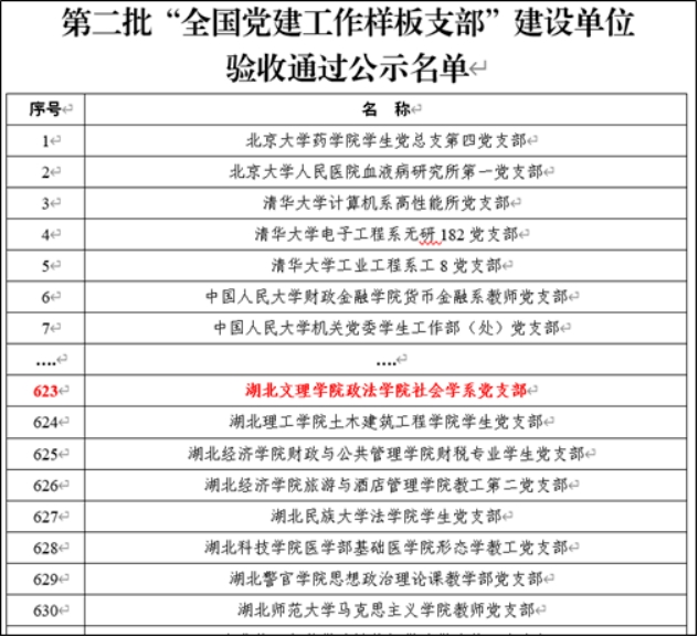 (williamhill官网网站 通讯员 詹进伟报道)近日,教育部思想政治工作司公示了第二批新时代高公司党建示范创建和质量创优工作和首批高校“双带头人”教师党支部书记工作室建设单位验收结果,公司williamhill官网网站社会学系党支部顺利通过第二批“全国党建工作样板支部”建设单位验收。