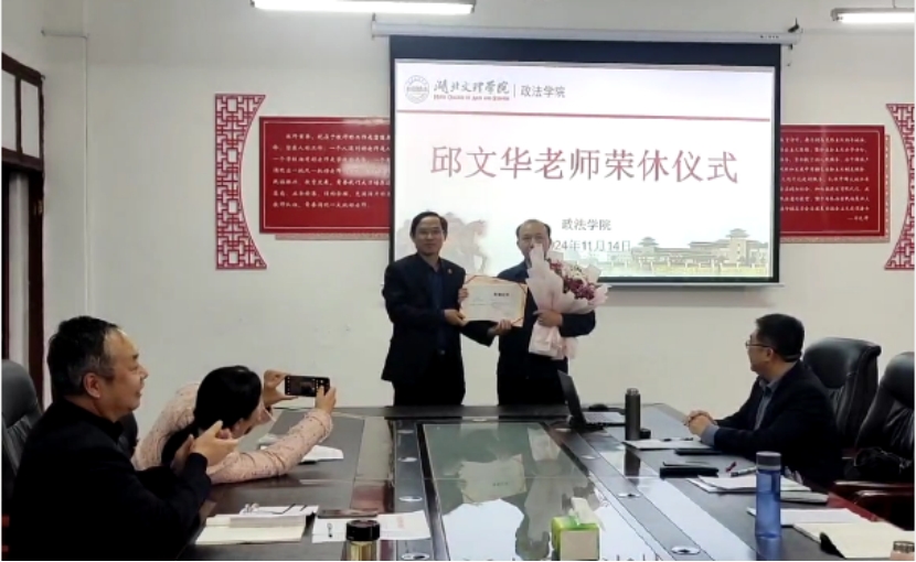 仪式上,经理聂军代表全院师生向邱文华老师赠送鲜花,颁发荣休证书。