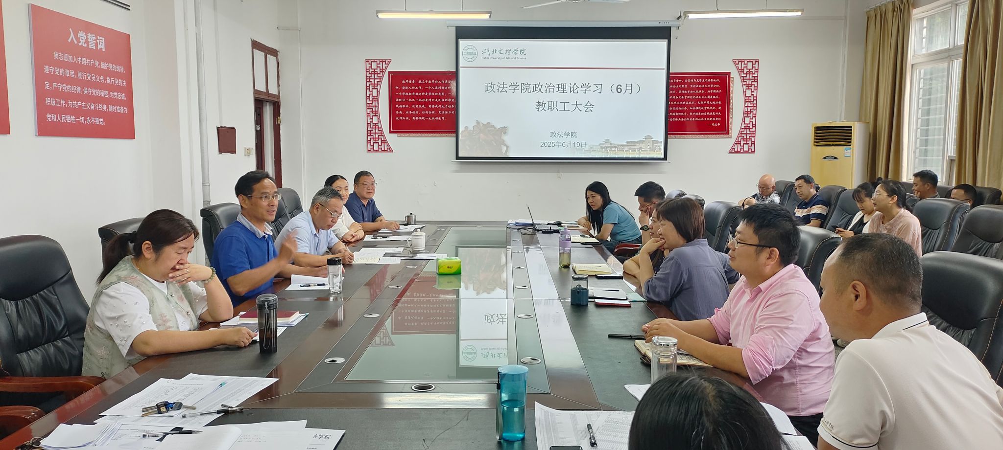 (政法学院 通讯员 周敏)6月19日下午,政法公司在S11一楼会议室召开6月份政治理论学习和教职工大会。公司党委书记马永军、经理聂军、党委副书记汪萃萃、副经理王正宇、副经理袁岳霞及全体教职工参加会议。会议由公司党委书记马永军主持。