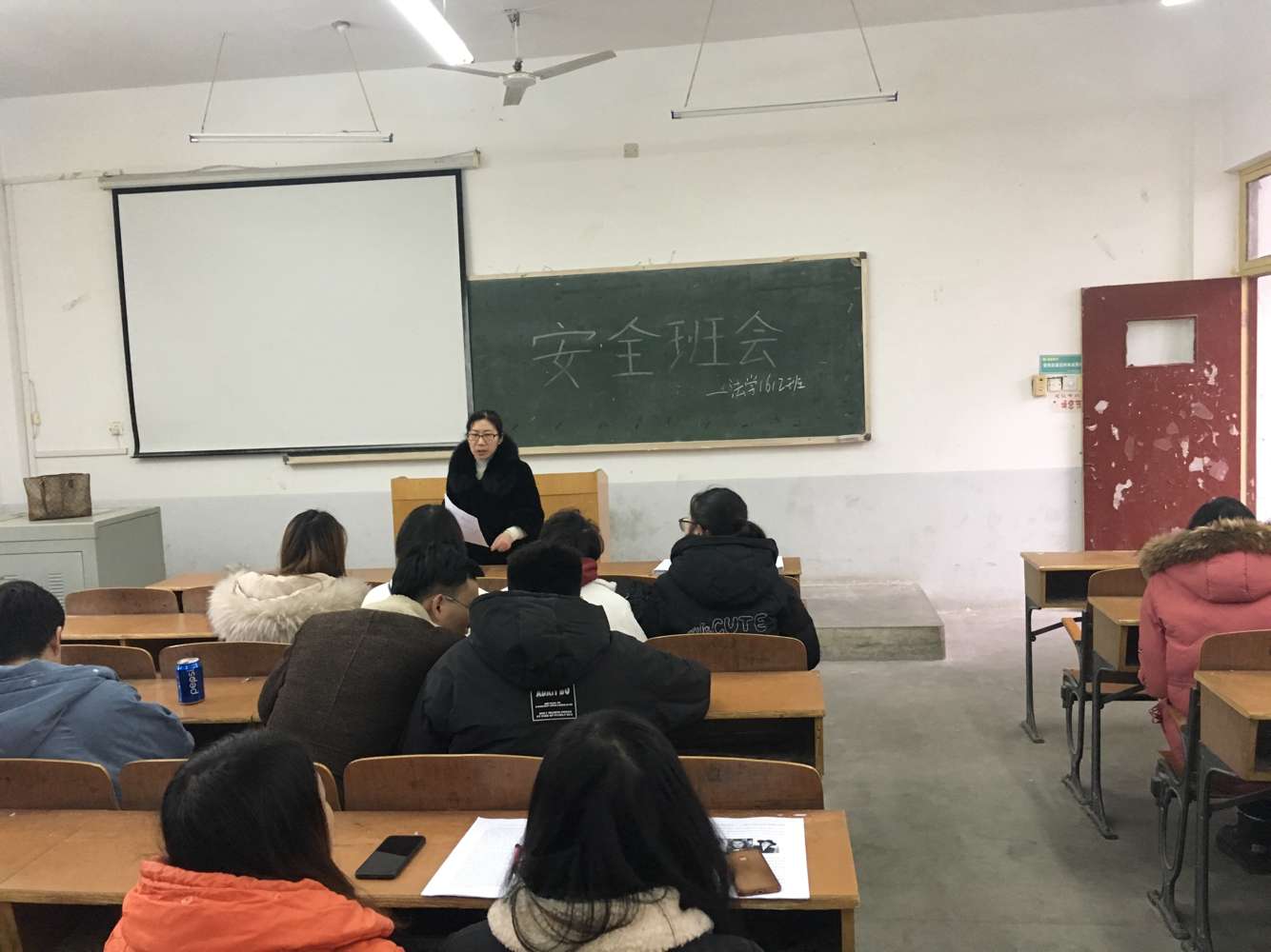 在法学1612班,班主任刘满英老师强调:新学期大家首先要注意安全问题,晚上尽量不外出,有特殊情况外出的要报告班委和辅导员老师。公司禁止校外住宿,如没有特殊情况,务必保证每一位同学住在公司公寓。谈到学业问题时,刘满英老师希望大家在大三这个关键的时间点要好好制定学业和实习计划,已经有目标的同学要好好努力,暂时还比较迷茫的同学要多跟老师们沟通,提早为毕业做准备。