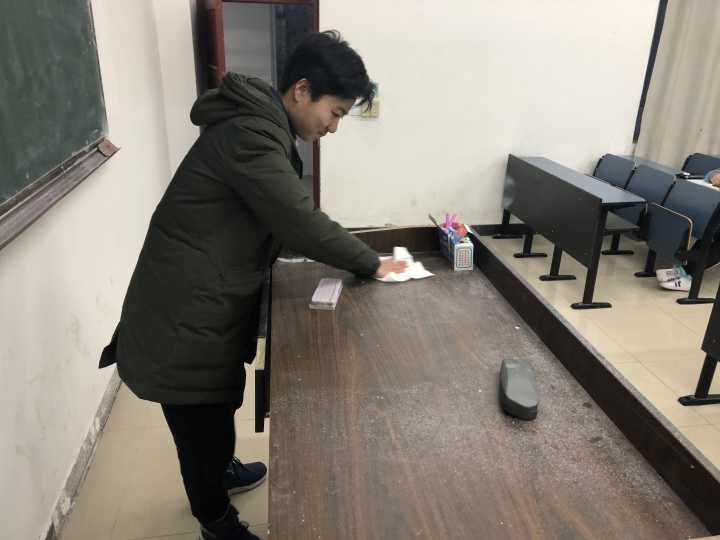 首先,由党委副书记汪萃萃致辞,志愿者代表带领宣读志愿服务活动倡议书;随后各志愿小分队前往各自场所开展活动。志愿者的工作也被安排的井井有条,志愿者自备抹布,扫帚,水桶等清洁工具,在寝室门口集合。分团委副书记陈露将志愿者分成4队,每队10人。各志愿小分队组长带领队员到达教室、寝室、会议室。打扫完成后,各分队组长将队员带回寝室门口集合并汇报清洁情况。