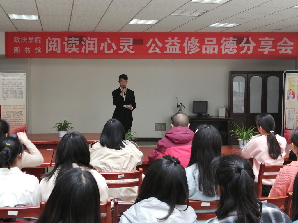 会议共有3个阶段,第一阶段,法学1812班徐梦瑶同学结合自己参加公司三月学雷锋志愿服务活动,分享了阅读《雷锋精神》的感受:“雷锋精神体现了一种‘向善’的价值追求,是理想信念上的‘向善’和价值取向上的‘向善’。”第二阶段,针对“两会”热点,结合专业知识,法学1812班班晨同学就“法治化手段在供给侧结构性改革中的重要性”,社工1811班贾娟娟同学就“降低企业社保缴费负担”阐述了自己的心得体会。第三阶段,社工1811班董丽同学作为员工代表,发起四月读书月活动倡议:“号召同学们走进图书馆,养成爱读书、读好书的习惯,让心灵在阅读中成长,知识在阅读中丰富。”最后,张永昌做了总结发言,希望同学们能做到崇尚书香爱读书、品味经典读好书、学以致用善读书、终身学习多读书。