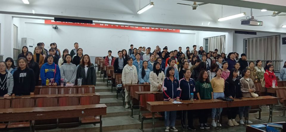 最后在优秀共青团员尚淼同学的带领下,全体团员青年重温了入团誓词,齐唱中国共产主义青年团团歌。参加活动的同学们纷纷表示,要进一步坚定理想信念,用拼搏、奋斗、担当的实际行动向新中国70华诞献礼!