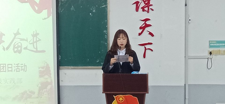 紧接着法学类1911班陈忠浪同学在进行“与国前行,任重道远”主题演讲。陈忠浪追忆“五四运动”、抗战救国、改革开放等各个时期中一代代青年的爱国热情,代表我院新时代新青年发出了报效祖国、投身民族振兴战略的青年之声。