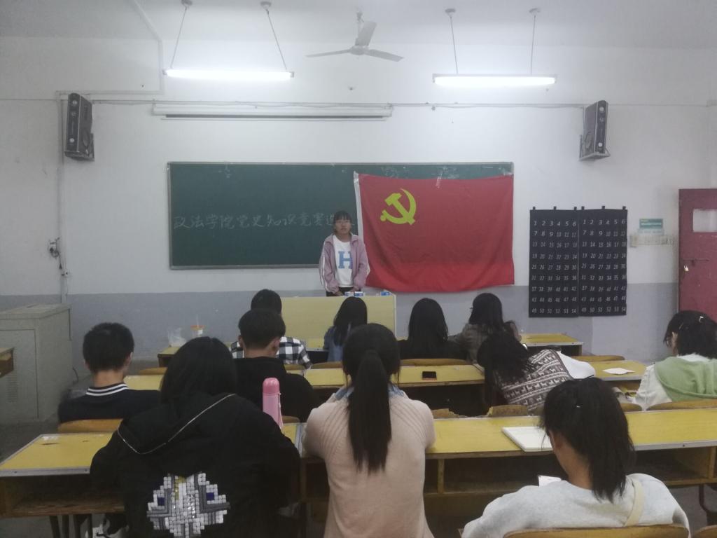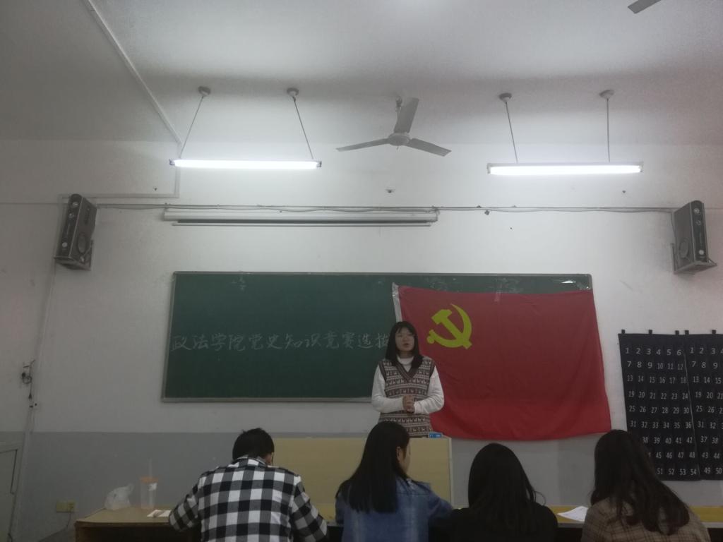 此次选拔赛活动主要形式为口试,在同学们积极党史知识,认真准备演讲的充分准备下,活动开始。十名参赛选手有序的上台发表关于党史的演讲,演讲期间,所有监考人员以及其他参赛选手都认真的聆听演讲者的发言。演讲完毕后,大家互相讨论交流了关于学习党史的心得体会。继而,监考者向参赛选手提出了几个关于党史的问题。之后,由监考人员对本次选拔赛做出公平公正的评判,活动圆满结束。