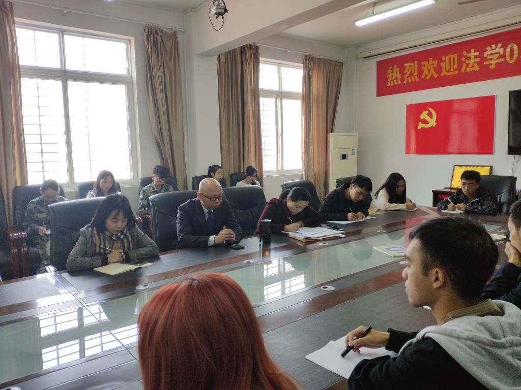 (williamhill官网网站 通讯员 邢宇飞)为进一步落实“无手机”课堂创建要求,推进学风建设。williamhill官网网站“落实无手机课堂,推进学风建设”座谈会于11月18日在南区十一栋会议室召开,参与此次座谈会的人员有公司党委副书记汪萃萃、法学系副教授张颖杰、辅导员陈都河川与各班班委。