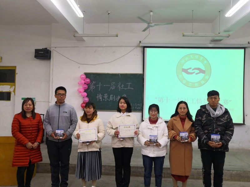 所有的选手展示完毕,社会学系专业负责人何晓红对本次的比赛进行了专业的点评,何老师高屋建瓴给同学们概述了社工专业发展的趋势和发展的前景,介绍了公司社工专业发展的的十年艰辛历程和丰硕成果。赞扬肯定所有参赛选手在本次大赛中的表现与付出,每个小组在社工技巧方法和原则的运用上都有可圈可点之处,强调了社会工作目标是“助人自助”而不仅仅止于解决问题本身,并提出结合公司社会工作的特色实践,指出未来的社工情景剧能够探索“司法社会工作”、“社区社会工作”等不同的领域,打造有质量、有新意、有影响力的社工情景剧。参赛选手们也从得到专业学习和能力的提升,受益匪浅。随后公布了本次大赛的最终成绩:获得优秀奖的是专业组刘星语小组和王子翔小组,共两组;获得三等奖的是专业组吴景怡小组、严文瑾小组和马丁莉小组,非专业组周涛小组、刘鸿雁小组和张芊芊小组,共六组;获得二等奖的是专业组王润琪小组和尹明慧小组,非专业组孙曦钰小组和齐琳小组,共四组;获得一等奖的是专业组李宗燏小组和非专业组刘子齐小组,共两组。并由各位老师位获奖选手一一颁奖。