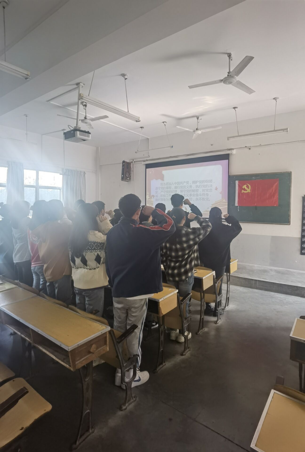 仪式共四项内容。活动宣布开始后,雄壮的国际歌奏响,全体党员起立,铿锵有力的歌声拉开活动的序幕。第二项,一起参加入党宣誓的预备党员的共19人,宣誓人持立正姿势,面向党旗,举右手握拳宣读誓词,由预备党员代表尹明慧领誓,坚定有力的宣誓环节彰显了各位预备党员积极向党组织靠拢的决心和信心。第三项由预备党员代表朱静雯同志发言,她向党组织对其的关心和指导表达了感谢,同时表明了加入中国共产党为党和国家现代化建设做贡献的坚定意志。接着由党员代表林梓滢同志发言,她激励各位预备党员努力提升自身素质全心全意为人民服务,表达了对各位预备党员正式加入党组织继续为人民服务的期盼。