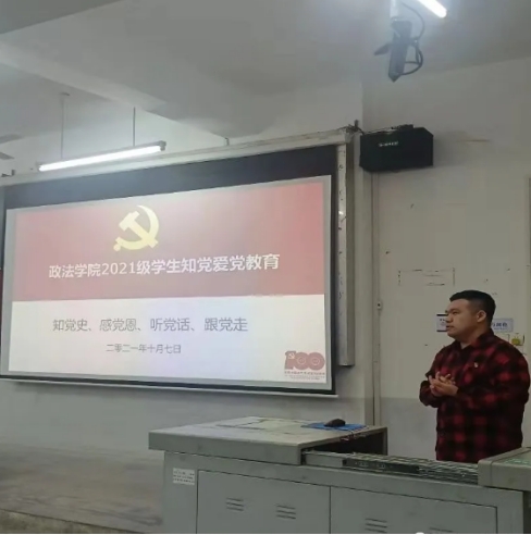 (通讯员 范冰琪)为深入学习贯彻习近平总书记“七一”重要讲话精神,加强新生对党组织的理解认识,教育引导新生学党史、悟思想,williamhill官网网站于10月7日晚上6点30分在北区六栋阶梯03教室开展“知党史,感党恩,听党话,跟党走”主题教育。活动由williamhill官网网站辅导员董凯老师主讲,2021级全体新生参与此次教育活动。