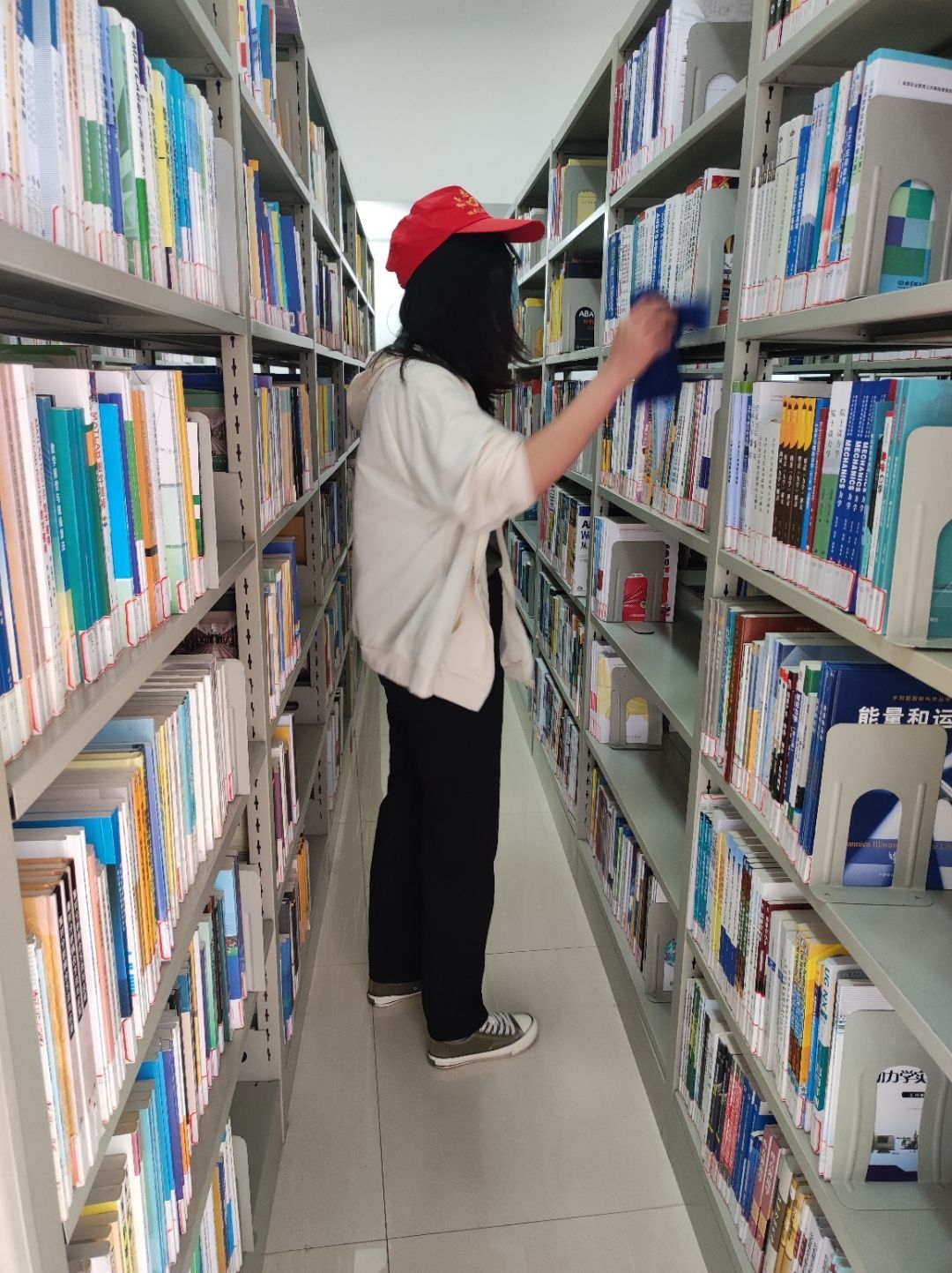 在图书馆老师的安排下,分成两支小队,其中一队负责擦拭书架,另一队负责整理书籍。整个活动进行中,志愿者们仔仔细细擦拭着每一个书架、每一本书籍。他们挽起袖子、拿起抹布卖力地工作。活动最后,志愿者们集合在一起分享着各自的感受及以后自己对志愿服务活动的期待。本次志愿服务活动中,志愿者们用实际行动践行了“奉献、友爱、互助、进步”的志愿服务精神,展现出新时代志愿者的良好精神面貌。