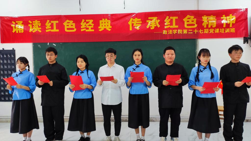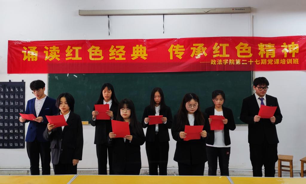 通过这次活动,加强了学员们对红色经典著作的阅读,对中国精神的传承和弘扬。学员边国旗在活动结束后动情的说:“从选题到排练,集体之间的合作不断加强,对红色经典书籍有了新的认识,也喜欢上了诵读,红色经典书籍的阅读能够给人一种强大的精神力量,这是一场红色经典诗文诵读活动,更是第27期入党积极分子们爱党爱国的精彩演绎。”