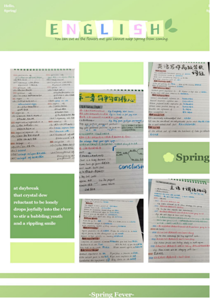 本次笔记评选活动同学们都在展示自己别具一格的记笔记的方法,同时,学习部也针对同学们的笔记的情况进行打分评分标准,根据记号笔色彩运用、笔记整体排版布局、笔记的完整性、对老师课堂内容的补充标记、树形图表格总结以及笔迹工整度,进行打分排名,分发证书。通过这次活动,同学们可以相互学习,分享学习方法,让同学们能找到高效率的学习方法,对同学们有很好的学习借鉴的意义。
