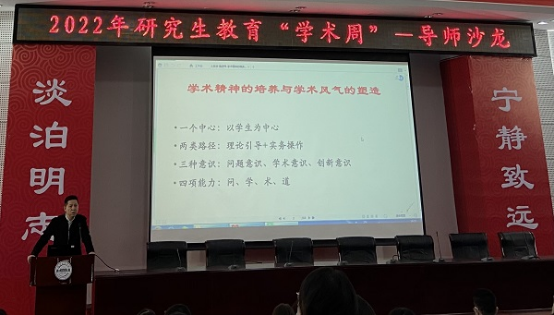 (通讯员 刘婷)为拓展研究生的学术视野,提升综合素质,激发科研创新热情,进一步营造浓厚的科学研究氛围,促进师生互动交流。10月27日下午,2022年研究生教育“学术周”—导师沙龙活动在宁静楼三楼报告厅拉开序幕。