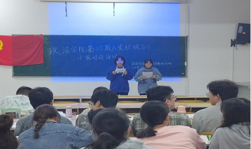 首先主持人赵玉鹏介绍讨论背景和活动流程,紧接着各小组发言人上台,从如何推进马克思主义中国化、湖北如何建设全国构建新发展格局的先行区、学习二十大后的所思所想三个方面分享了小组讨论的成果。殷玉豪同学在谈到马克思主义中国化时讲到:“要把马克思主义基本原理同中国具体实际相结合、同中华优秀传统文化相结合,坚持运用辩证唯物主义和历史唯物主义,才能正确回答时代和实践提出的重大问题,才能始终保持马克思主义的蓬勃生机和旺盛活力。”在谈到湖北如何构建新发展格局的先行区问题上,唐雨杰同学从统筹发展和安全角度出发,要以流域综合治理明确并守住安全底线;赵玉鹏同学说:“在深入学习党的二十大报告后,我立志要做走在时代前面的奋进者、开拓者、奉献者,把学习作为首要任务,让勤奋学习成为青春远航的动力,让增长本领成为青春搏击的能量。”最后邓仕元老师对大家的分享进行了总结,他讲到:“要深入学习党的二十大讲话精神,以更高的标准严格要求自己,珍惜每一次党课机会,认真学习党的各项方针政策,逐渐提高自己的思想觉悟,争取早日加入中国共产党。”