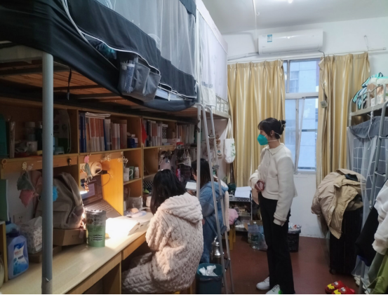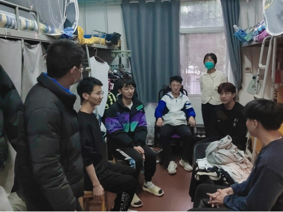 在走访寝室过程中,两位老师表达了公司对同学们的关心,叮嘱同学们无论在校遇到任何困难,都要及时与老师反映,老师们会第一时间为同学们排忧解难,最大程度地保障同学们的身心健康和生活质量。其次,要做好个人防护,严格落实公司“非必要不离校”的防控政策,积极配合公司疫情防控工作,按时完成每日全员核酸检测,共建平安健康的校园环境。同时,提醒同学们在疫情期间提高自我防范意识,按时作息,多吃水果蔬菜,积极锻炼身体,提高自身免疫力。尤其在网课期间,更要防范网络诈骗,增强反诈意识。最后,两位老师鼓励同学们,临近期末,要认真复习备考,养成良好的学习习惯。