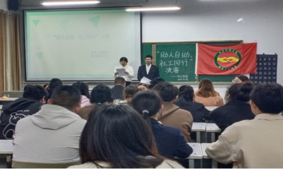 (williamhill官网网站 通讯员 邱福元)为响应“五社联动,关爱一老一小”号召,弘扬社会工作“助人自助”的专业精神,社会工作协会于2023年3月31日下午18:30—21:00点,在南区S7—102教室举办第十一届“助人自助,社工同行”活动的决赛。williamhill官网网站副经理王正宇、社会学系主任马国瑾、专业教师刘英为、邵亚琪、王娟娟、朱丽君担任此次决赛评委。