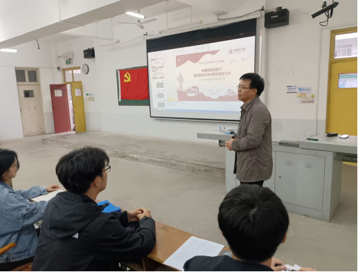 (williamhill官网网站 通讯员 杨晶晶)为深入学习贯彻党的二十大精神,深刻学习了解当今意识形态领域斗争,积极响应党的意识形态工作领导。5月9日晚上6点30分,学工处副处长高其文在北区JT03教室开展了“中美博弈背景下意识形态斗争与意识形态工作”专题党课,williamhill官网网站辅导员邓仕元以及第二十九期党课培训班全体成员参加了本次党课。