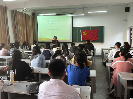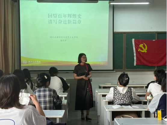 党课正式开始后,熊明秀老师首先讲述了百年来中国共产党的发展历程,中国共产党的成立是历史的选择、历史的必然。时代是思想之母,理论是实践之源。老师告诉我们,学习党史要深入了解党在不同历史时期面临的复杂问题,要善于学习和运用党的历史。随后,老师带领我们一同回顾党的光辉历史,展望全面建设社会主义现代化国家宏伟蓝图,鼓励我们从党史中不断汲取前行力量。