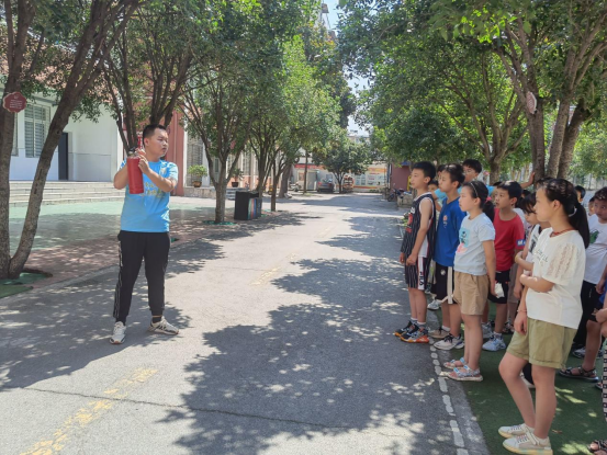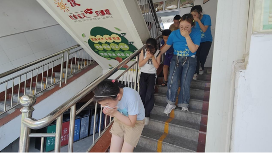 莫失莫忘莫大意,消防安全心中记。在整个消防演练过程中,志愿者首先讲解火灾逃生的正确姿势,并邀请同学们上台进行演示,同时帮助员工学习了解火灾逃生姿势的原理。紧接着志愿者强调在此次消防演习活动中同学们不可嬉戏打闹、互相推搡、上下楼梯要注意安全。随后消防演习正式开始,志愿者播放火灾预警,同学们在小组志愿者老师的指导下,有序排成五列,纷纷用湿毛巾捂住口鼻,弯腰前行,分别从教室的前后门逃生到教学楼下方的安全区域,在下楼梯时,分别在楼梯左右拐角处安排志愿者维护现场秩序,保证同学们的安全。志愿者在同学们都到达教学楼外的安全区域后,回到教室检查教室内是否还有同学未撤离出教室,确认教室内没有同学遗漏后后,回到教学楼外安全区域后各个小组清点人数,并由小组长向志愿者进行汇报统计,核对人数,确认所有同学都已经安全抵达着火点区域外。随即志愿者向同学们讲述了灭火器的正确使用方法以及使用时应注意的相关事项,如压力表上的指针在何处时可以使用等小知识,并邀请同学来进行演示灭火器的使用过程,同学们受益匪浅。最后,志愿者对此次消防演习活动进行总结,对同学们的表现提出表扬,在同学们有序回到了教室后,志愿者邀请同学们在班级内进行分享,有同学说:“这次演习活动让我们学习到了很多在火灾中逃生的技巧。”此次消防演习也获得了南漳县卞和小学教育集团书记和董事长的赞扬,以及同学们的肯定反馈,让同学们学习到了很多逃生小技巧,提高了生命安全的保障水平。