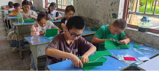心中有信仰,脚下有力量。手工制作课上以小军包制作为主,围绕中国共产党党史进程,为同学们讲述红色精神。课程伊始,志愿者为同学们讲解小军包的制作过程,绿色的包身配上红色的五星红旗,恢弘的天安门城楼下贴着为人民服务的字样,让员工在实践中感受红色主题。在志愿者和同学们的共同努力下完成小军包制作。与此同时,志愿者将红旗渠精神、井冈山革命精神、抗疫精神融入课堂,促进知识的吸收,寓教于乐,培养服务人民,担当重任的时代青年。