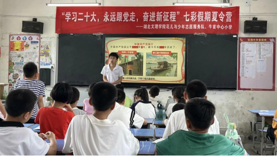 (williamhill官网网站通讯员 任晓颖 童煜轩)学习二十大,永远跟党走,奋进新征程。williamhill花儿与少年志愿服务团队于7月10日在襄阳市樊城区牛首中心小学开展以“党史学习教育”为主题的红色教育。本次课程从“中国共产党的发展历程、红色主题手工制作小军包”两个方面开展,旨在促进红色基因代代相传,涵养少年儿童爱党爱国情怀,培养新时代的好青年。
