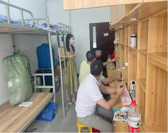 下午一点,党委副书记汪萃萃、辅导员李竹颖带领院员工会主席赵玉鹏等员工干部,深入员工宿舍核查寝室入住情况,对新生的到来表示热烈地欢迎。汪萃萃勉励各位新生:“要尽快适应新环境,与新同学、新室友和谐相处,努力学习专业知识。在新学期里,用实际行动展示湖文政法青年昂扬向上、乐于奉献、积极进取的精神风貌。”
