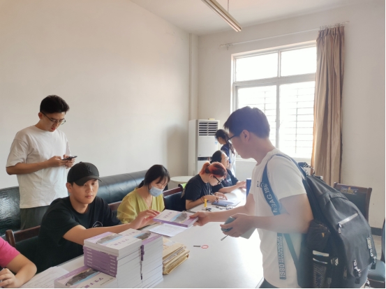 早上七点四十分,参与迎新志愿服务活动的8名志愿者,在何子涵和院员工会主席赵玉鹏的带领下,前往南区四栋宿舍楼,领取了新生所需的64把方凳,并搬至南区11栋103办公室。随后,在李竹颖的指导下,志愿者们迅速掌握了工作内容、工作要求、工作要领。八位志愿者各司其职,细心高效地分发员工手册、校园卡、寝室钥匙等物资,分门别类地收取新生档案、团组织档案、党组织档案等材料,并做好相关记录。期间,为保障新生顺利找到报道地点及员工宿舍,志愿者们还主动承担起“湖文向导”的职责,帮助报到的新生搬运行李。