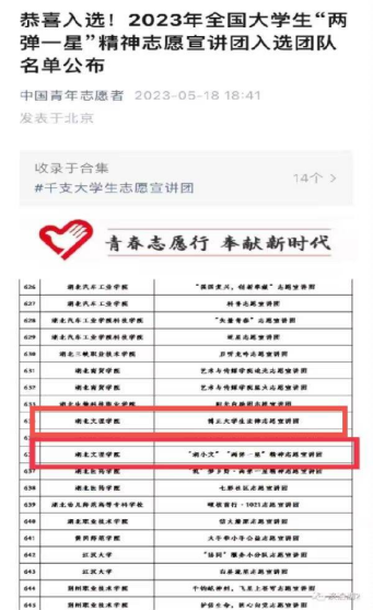 公司的两支队伍实践成果颇丰,两队分别入选襄阳市“希望家园”优秀志愿服务团队和湖北省暑期“三下乡”社会实践活动“优秀项目”,且均入选2023“法治中国青春行”社会实践专项名单。