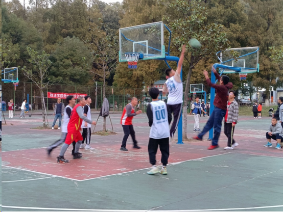 比赛随着裁判的哨响拉开了序幕,老师同学们迅速进入状态。员工队以旺盛的精力,积极的跑位、抢篮板和几个关键三分上篮一度得分。教师组的老师们也不相上下,其中邓仕元老师的一记漂亮的三分让赛场上队员们激情澎湃,大家顿时备受鼓舞,各种投篮上篮得分。在老师们的几个精准投篮下后半场比赛结束,比分定格在100:85,老师队取得了胜利。