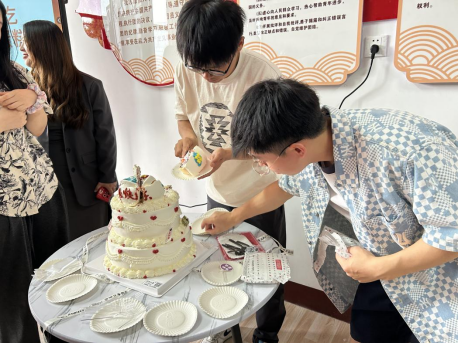 在才艺表演结束后,辅导员邓仕元老师为大家带来了精心准备的毕业蛋糕。同学们围坐在一起,共同分享这份甜蜜的礼物。邓老师还为大家送上了温馨的毕业祝福,希望同学们在未来的道路上能够一帆风顺、前程似锦。