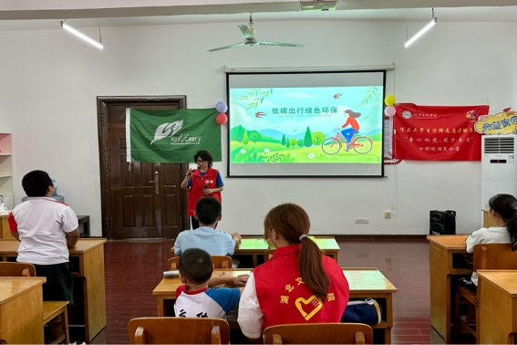 在随后的互动环节中,志愿者通过提问引导孩子们思考如何在日常生活中践行低碳理念。孩子们踊跃回答,有的提到要节约用水,有的表示要多步行或骑自行车,还有的建议要回收利用废旧物品。志愿者同学对每个孩子的回答都给予了积极的肯定和表扬,进一步激发了他们对环保的兴趣和热情。