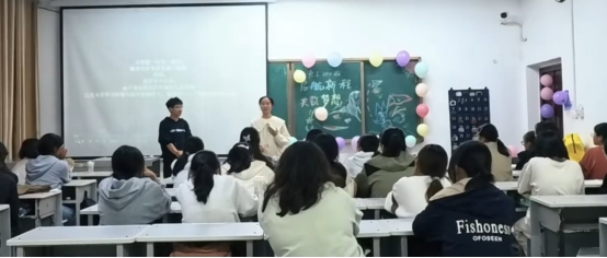 活动在温馨而活跃的氛围中拉开序幕。首先,通过一场精彩的合唱表演《小美满》,迅速打破了初见的拘谨,彼此间的距离被拉近。紧接着,一场别开生面的“击鼓传花”破冰游戏更是将现场气氛推向了高潮。随着音乐的起伏,同学们传递着手中的道具,每当音乐停止,手持道具的同学便勇敢地站上台前,分享自己的爱好、家乡的美食,或是表演一段才艺,赢得了阵阵掌声和欢笑。