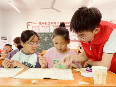张缜同学在帮助小朋友完成作业“当然也会有很多挫折,一个团队任务如何分配、怎么对接志愿服务地点,这些问题都是不小的考验。”张缜说,“但换个方面去想,正因为这些挫折才有了今天的我。”为了更好地开展志愿服务,张缜同学积极参加公司组织的志愿者培训大会,来提升自己的能力。在空余时间,他经常和伙伴一起探讨志愿服务活动的开展流程,他也积极和老师沟通,在老师的帮助下完善工作。