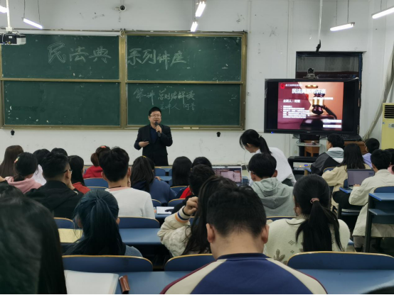《中华人民共和国民法典》是规范公民人身权和财产权的基本法律,规定了人们“从出生到死亡”的各项制度,保护着老百姓的合法权益。何普老师主要从民法典的立法意义、立法过程、总则编的体系结构以及新增(删改)条文的解读四个方面为同学们讲述了民法典颁布实施的重大意义以及总则编重点条文的新旧变化。何老师通过一些通俗易懂的例子讲述重点条文的适用,使同学们更容易理解这些条文的立法意义。最后,他强调民法典系统整合了新中国成立70年来长期实践形成的民事法律规范,同时总则编覆盖民法各编,形成了总分结合、动静结合的法典结构。