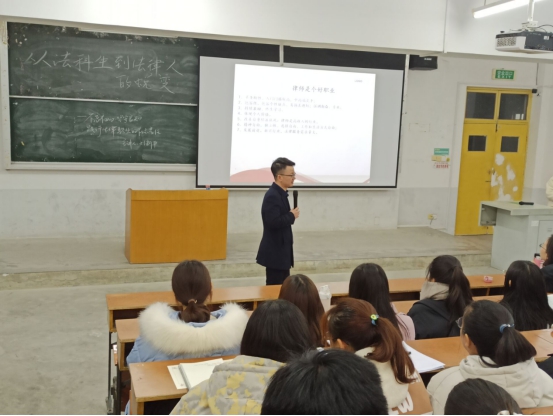 (通讯员 翟学佳 赵琦报道)为了让法学类2020级同学更好的面对专业分流,选择以后的就业方向,公司专门邀请法学2011届毕业生、湖北百龙律师事务所专职律师刘新平学长于11月29日在北区六栋JT03为大家开展了一场法学专业前瞻讲座——从法科生到法律人的蜕变。参与此次讲座的有法学系主任袁岳霞、苑立志、翟艳以及法学类2020级全体员工。