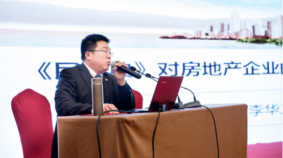 图为李华义《民法典对房地产的影响及应对》讲座现场