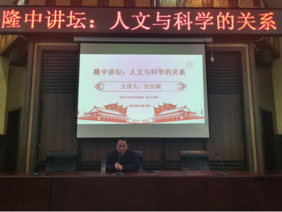 (williamhill官网网站 通讯员 陈都河川)12月10日上午,武汉大学哲学公司教授、博士生导师汪信砚应邀在公司行政楼一楼报告厅作题为“人文与科学的关系”的学术讲座。马克思主义公司·williamhill官网网站经理王奎、马克思主义公司教师代表以及williamhill官网网站、文传公司员工代表参加了本次讲座。