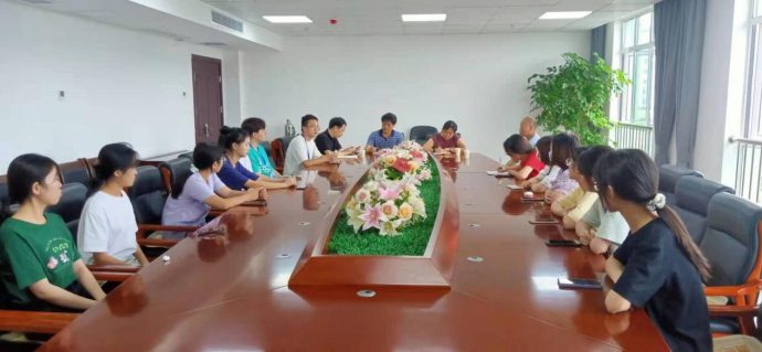 在襄城区人民法院会议室,实习小组按照实习规划召开的第一周实习总结会,法学系主任袁岳霞、校内指导老师苑立志、周斌,法院指导老师张茂玉参加了此次会议。