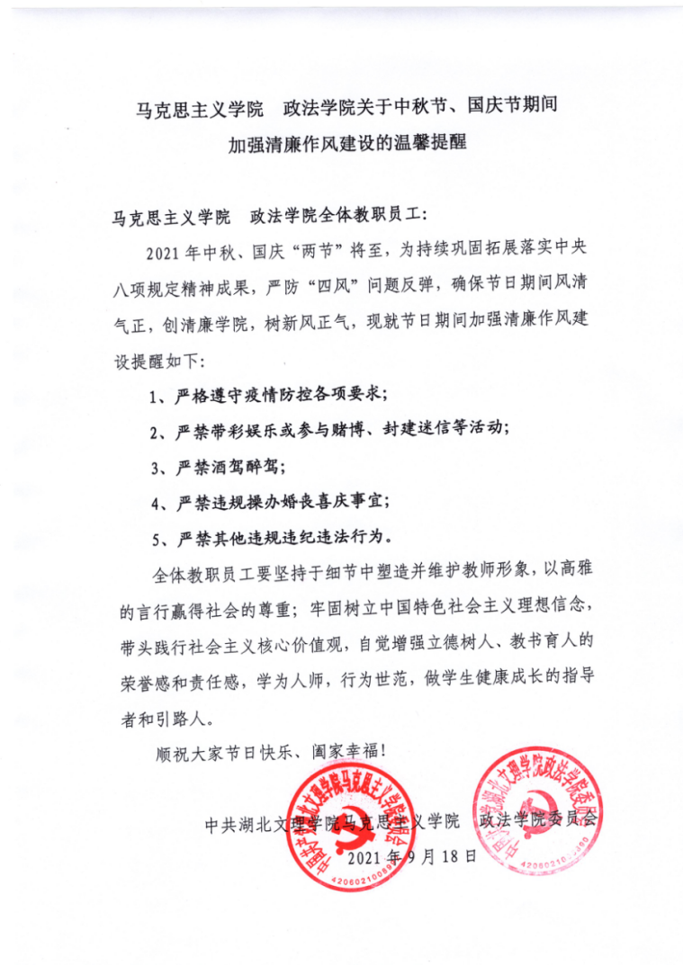 【党风廉政建设】马克思主义公司 williamhill官网网站关于中秋节、国庆节期间加强清廉作风建设的温馨提醒