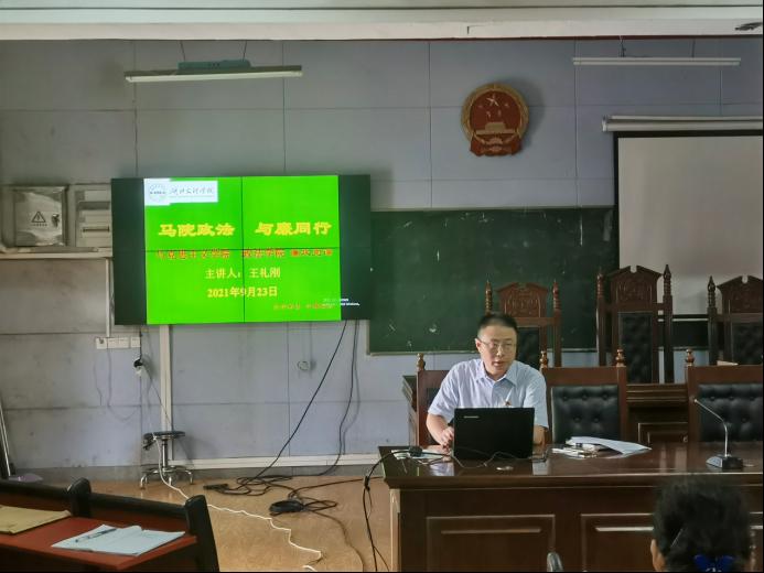 活动第一阶段,王礼刚主讲题为《马院政法 与廉同行》的专题廉政党课。“我只是一名普通教职工,没有人财物的支配权力,也有廉政(廉洁)问题吗?”“我不是党员,哪些廉政纪律与我有关?”“讲纪律、守规矩。纪律有那些?规矩有哪些”?通过课前三问,引出本次廉政党课。王礼刚详细讲解了十九大以来高校廉政教育的形式与任务、与高校教职员工直接相关的典型案例,强调了公司全体教师要认真学习、模范遵守职业道德规范和相关法律法规,特别是在思想认识、教学活动、学术道德、日常工作、风险防控等方面要适应新时代新理念新要求,从严从实要求自己,营造想干事、能干事、干成事、不出事的浓厚氛围,把宣教月活动的成效不断转化为推动公司高质量发展的动力。