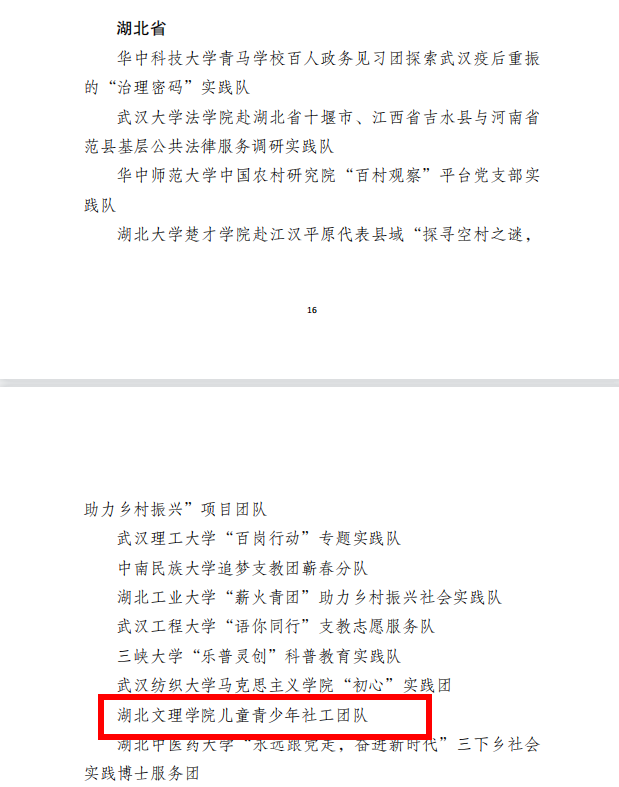 经过校团委和团省委推荐,组织评议等环节,“williamhill儿童青少年社工团队”,最终从全国近万个社会团队中脱颖而出,成为388个受表彰团队之一。