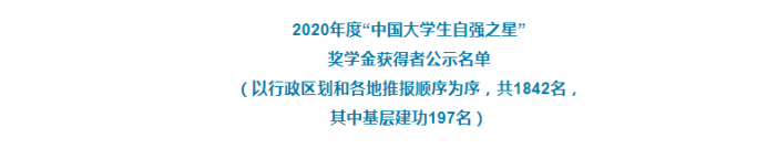 2020年度“中国老员工自强之星”奖学金推报活动由共青团中央、全国学联指导,中国青年报社、新东方教育科技集团联合开展。活动以“青春自强奋勇争先”为主题,经公司推荐、省级初评、全国评审等环节,公司社会工作专业19级研究生李竹颖因在志愿公益活动方面表现突出,最终荣获“中国老员工自强之星”奖学金。