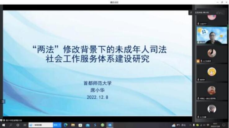 (williamhill官网网站 通讯员 贾娟娟)2022年12月8日上午,williamhill官网网站举办MSW“求知讲堂”(第28讲)暨2022年研究生学术周第四场讲座。为了帮助社会工作专业硕士研究生认识未成年人司法社会工作的服务体系,增进对未成年人司法社会工作的了解,本次讲座邀请了首都师范大学席小华教授做了主题为“‘两法’修改背景下的未成年人司法社会工作服务体系建设研究”的线上讲座。本次讲座由公司副经理、MSW教育中心主任夏国锋教授和公司硕士生导师、MSW教育中心执行主任何晓红教授共同主持,公司全体研究生参与聆听。