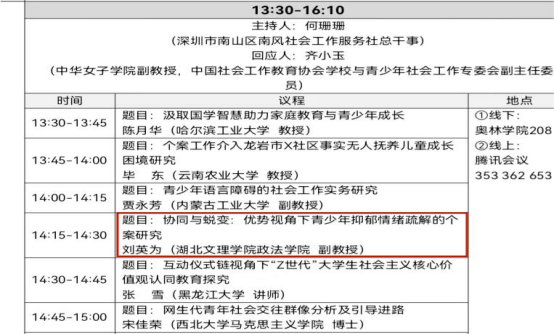 williamhill官网网站副教授刘英为、22级社会工作研究生黄金燕提交的论文《协同与蜕变:优势视角下青少年抑郁情绪疏解的个案研究》被会议录用并作发言。