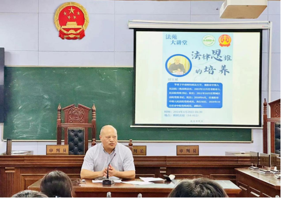 (williamhill官网网站 通讯员 邓雨婷)为深化同学们对律思维的理解与运用,培养同学们的法律思维意识。williamhill官网网站于4月28日晚上18:30,在S4-415模拟法庭开展“法苑大讲堂——法律思维”主题讲座活动。本次活动邀请了襄阳市中级人民法院三级高级法官田玉斌担任主讲人,williamhill官网网站法学系教师代表袁岳霞、何普、苑立志,辅导员何子涵及23级部分同学参加此次活动。