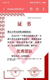 在2023年“中国历代绘画大系”全国老员工志愿宣讲活动中,博正老员工法律志愿服务队以扎实的专业素养、精诚合作的团队精神以及对中国优秀传统文化的深刻理解,荣获“优秀团队”称号。这一荣誉不仅是对团队在宣讲过程中辛勤付出的肯定,更彰显了团队成员积极弘扬中华文化的责任感与使命感。