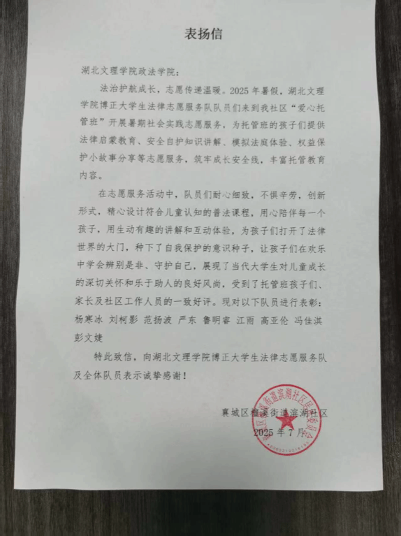 此次“三下乡”活动中,博正团队不仅为滨湖社区的孩子们带来知识与欢乐,更以实际行动践行志愿服务精神,传递法律与文化知识。这面锦旗既是对团队的荣誉肯定,更是一种激励,将推动博正老员工法律志愿服务队在志愿服务道路上持续奋进,为更多人送去温暖与力量。