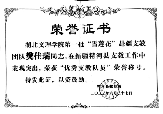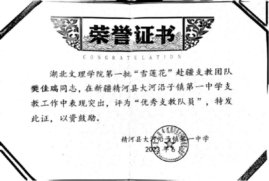 研会、党支部、社区疫情志愿者、带队“雪莲花”赴疆支教及助管工作,每一部分的工作皆任务繁艰,但樊佳瑞始终能做到在兼顾好自己学业的同时,真诚待人,热情做事,履职尽责,各项工作均得到队员们、服务单位员工、家长及公司老师们的认可,她自身也在各类实践中得到了极大的锻炼与成长,深入贯彻落实了习近平总书记对青年要求的内容。来自小城市的她始终认为“自己只是做了一名青年党员应该做的事情,既然做了就要都做好,每个人都在为自己的人生掌着舵,自己所为不足挂齿,还需要向更优秀的人学习。”在这些过程中,她不断告诫自己要不忘初心,要独善其身,走过的每一步都要及时自查自省,以此来“正衣冠”,做到自知自心,其路自明。